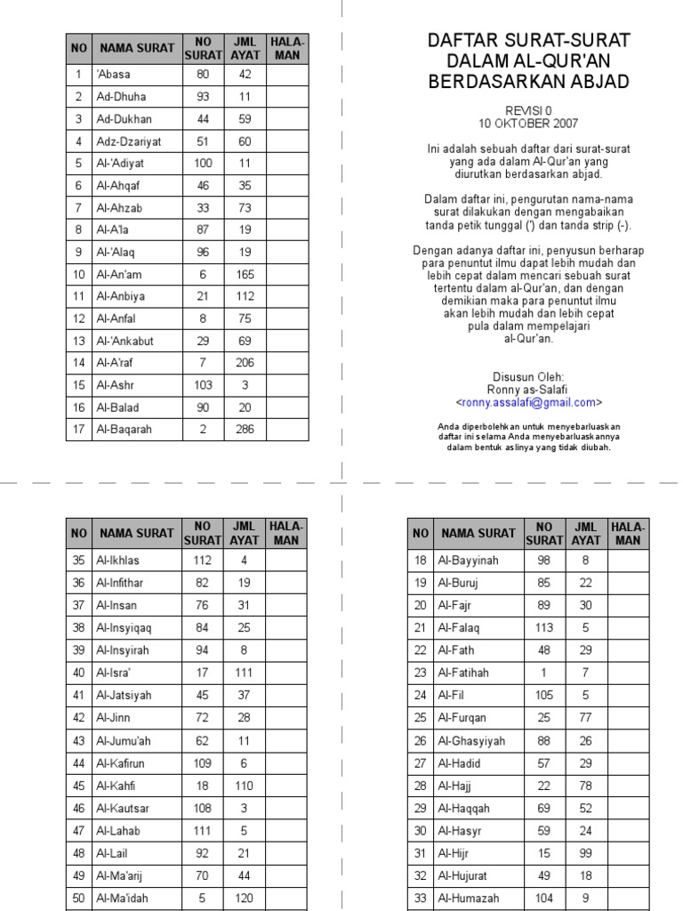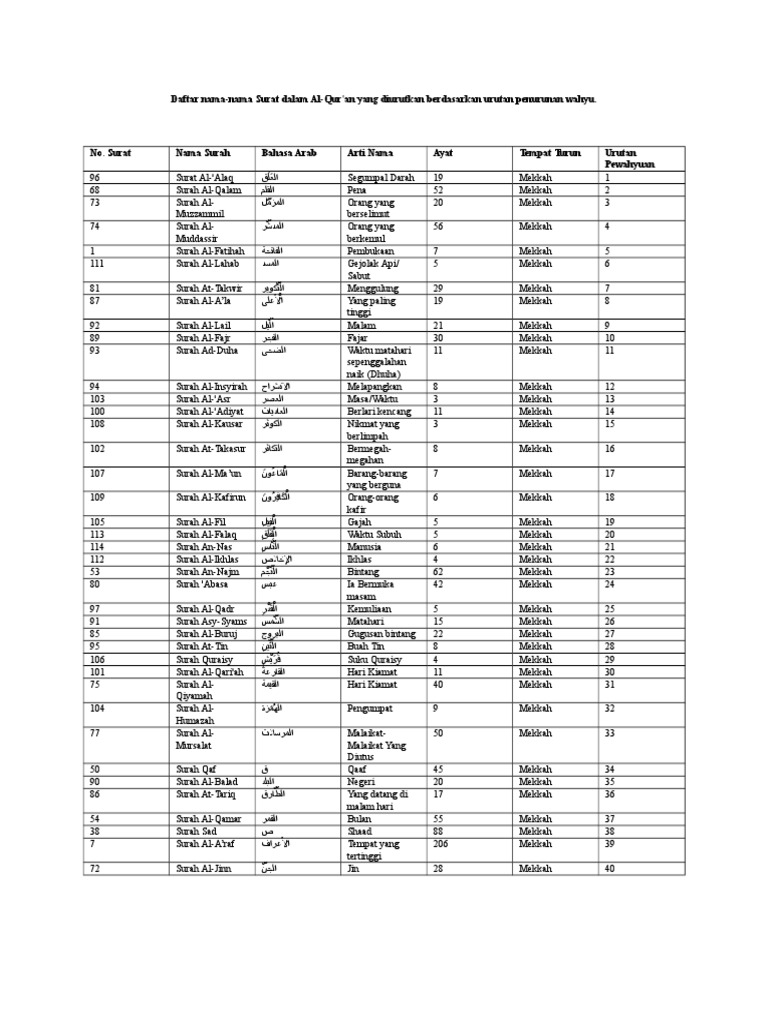 Nama nama surat dalam al qur'an. Akan sangat bagus bagi kita jika bisa mengamalkan beberapa surat yang utama tersebut. Nama surat alquran dan artinya ini dibagi menjadi dua yaitu surat makkiyah(surat yang diturunkan di kota makkah). Kbtkit insan madani 4 months ago. Nama surat alquran dalam bahasa arab terdiri dari 114 surat.