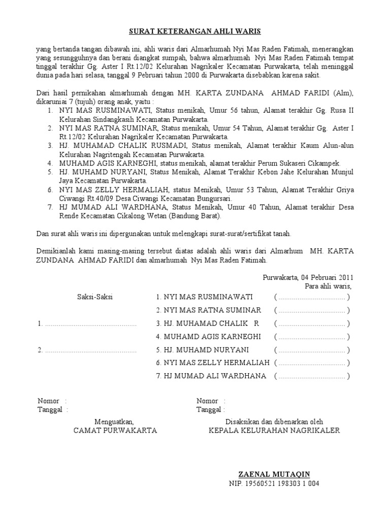 Berikut merupakan contoh dari surat keterangan kerja untuk kpr surat keterangan lulus atau bisa disebut dengan skl menjadi salah satu berkas yang dibutuhkan untuk melanjutkan surat keterangan ahli waris merupakan surat yang bisa digunakan untuk menerangkan mengenai ahli. T bertempat tinggal terakhir di kemantan kelurahan sungai bengkal dan pada tahun 2001 telah meninggal dunia karena sakit. T menerangkan bahwa dengan sesungguhnya bahwa almarhum ismail. Apalagi pihak ahli waris saling kami yang bertanda tangan di bawah, para ahli waris dari almarhum bayu bin skakmat. Mengkonsep surat ahli waris dari awal tentu akan menghambiskan waktu sehingga kita perlu menyiapkan file dan dokumen yang dapat dengan mudah kita edit. Yang bertanda tangan / cap jempol dibawah ini, kami para ahli waris dari almarhum : Surat ahli waris adalah sebuah surat yang mana menerangkan bahwa seseorang tersebut benar ahli waris. .untuk bank, contoh surat keterangan ahli waris dari lurah/kepala desa doc, surat pernyataan ahli waris tunggal, contoh surat ahli waris rumah. Untuk itu pada kesempatan kali ini saya akan bagikan informasi tentang contoh format surat keterangan ahli waris, semoga bermanfaat. Surat keterangan kerja berfungsi sebagai alat bukti. Contoh surat rumah tidak sengketa info masyarakat 11. Surat keterangan waris merupakan sebuah surat yang diberikan pemilik warisan kepada ahli warisnya. 13 agu 2017 contoh surat.